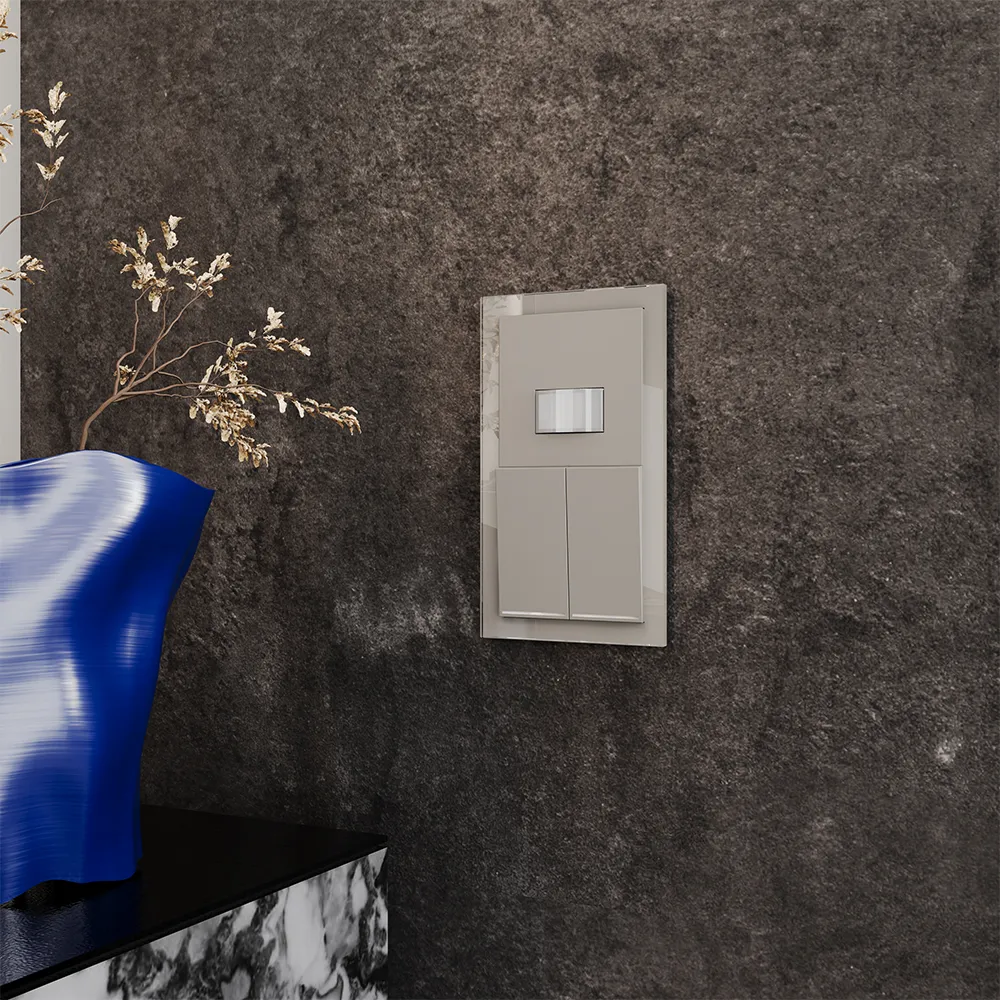 Выключатель полностью совместим с рамками из пластика и закалённого стекла той же серии и гармонично сочетается с другими устройствами VOLTUM S70 — от розеток до терморегуляторов и датчиков движения.