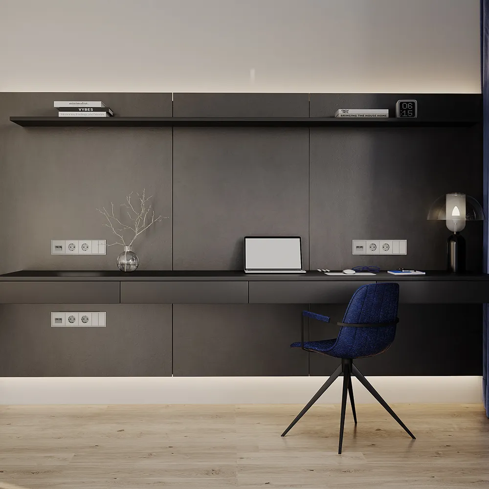 • Цвет «сталь» — лаконичный серо-металлический оттенок с холодным подтоном, который придаёт интерьеру современный, технологичный и сдержанный вид