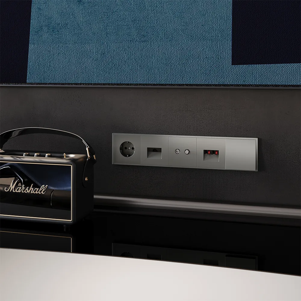 Розетка полностью совместима с пластиковыми и стеклянными рамками той же серии и гармонично вписывается в любые композиции из электрических розеток, выключателей и мультимедийных устройств VOLTUM S70.