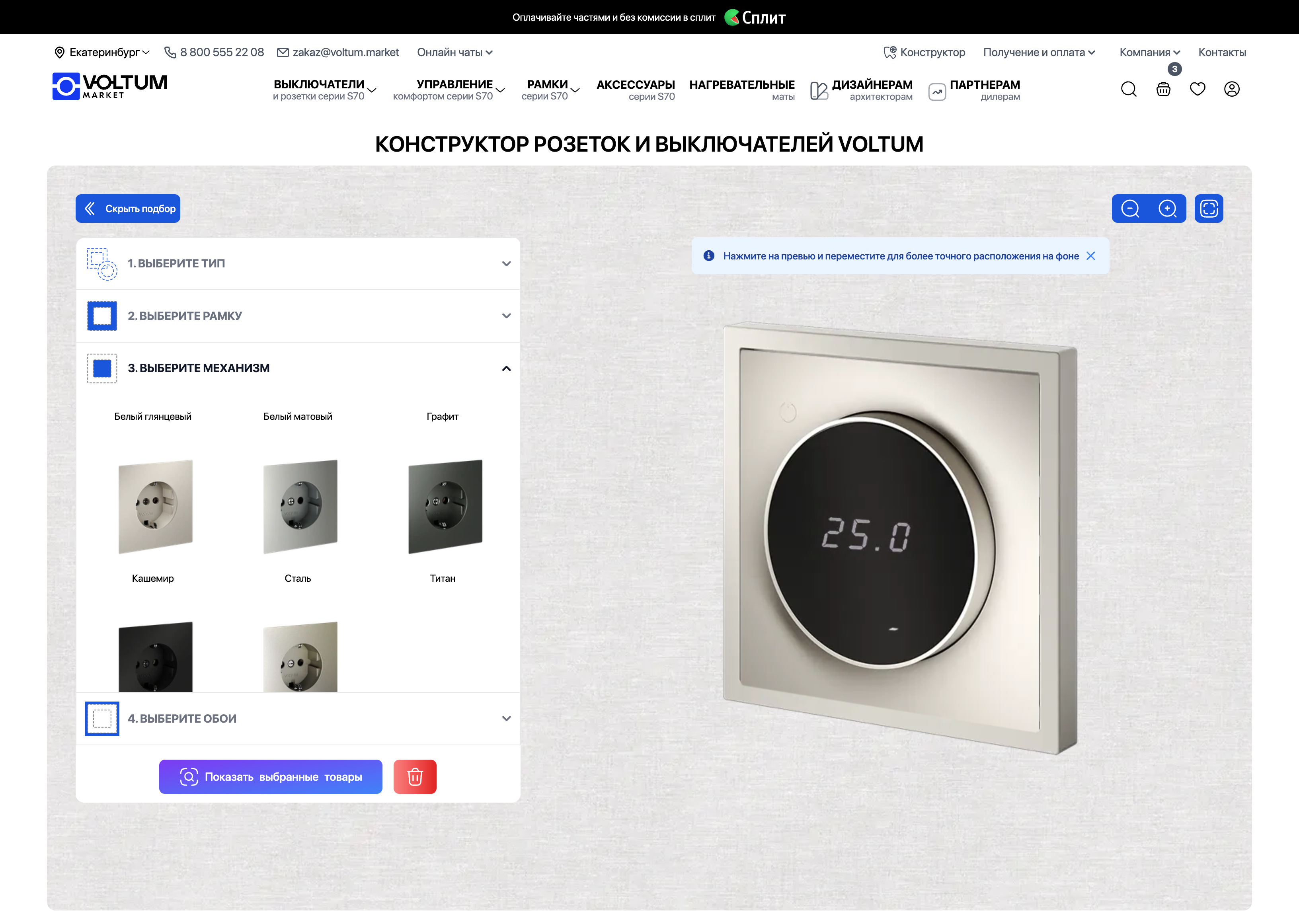 Соберите свой выключатель онлайн — подберите рамку, цвет и комплектацию. Посмотрите результат до покупки!